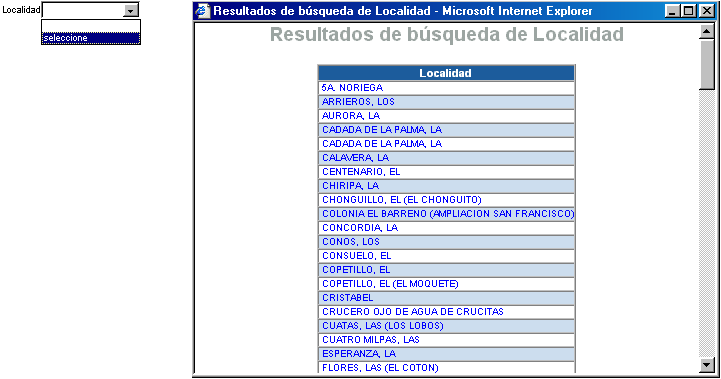 desplegará un listado con todas las coincidencias encontradas de acuerdo a la